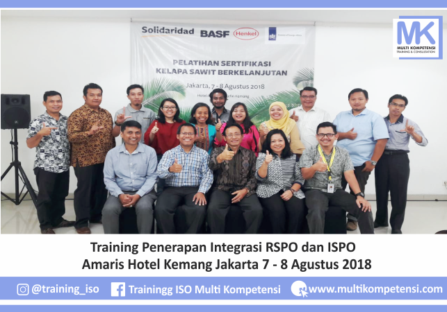MK Academy (PT Multi Kompetensi Solusi Bisnis) telah melaksanakan Dokumentasi Training Penerapan Integrasi RSPO dan ISPO Amaris Hotel Kemang Jakarta 7 - 8 Agustus 2018