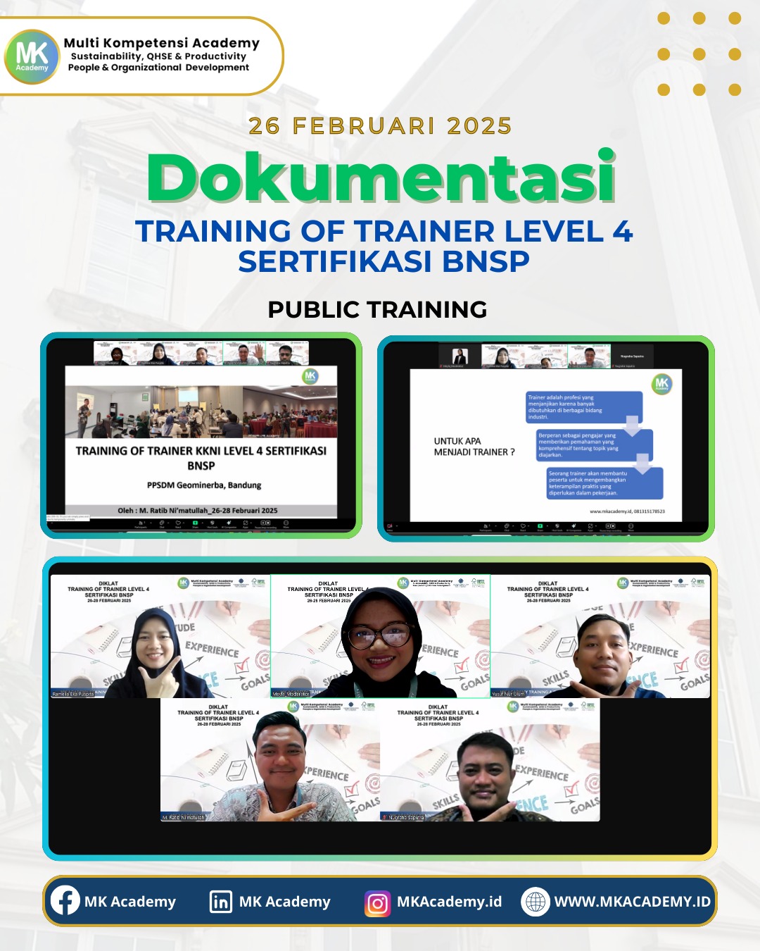 PT Multi Kompetensi Solusi Bisnis (MK Academy) – Gedung Graha Pool, Jl Merdeka No 110 Kota Bogor Whatsapp/HP 0813-1517-8523 | Telp 0251 8570150 Email : info@mktraining.co.id | info@mkacademy.id Social Media : IG @mkacademy.id | FB hidayatMKacademy | Tiktok @mkacademy22